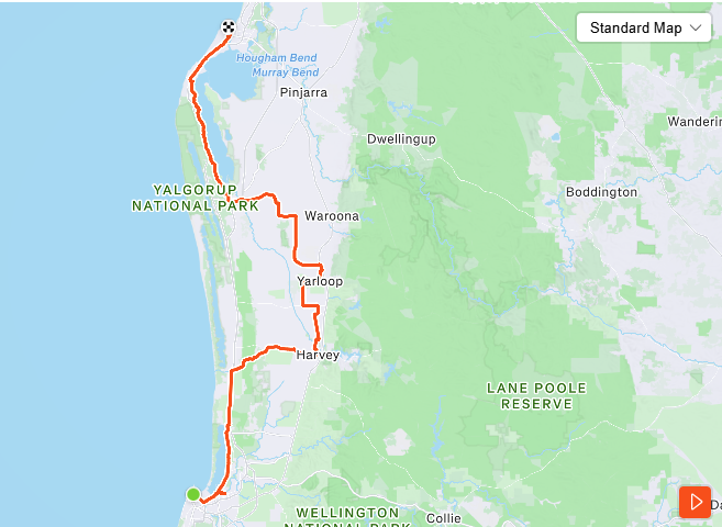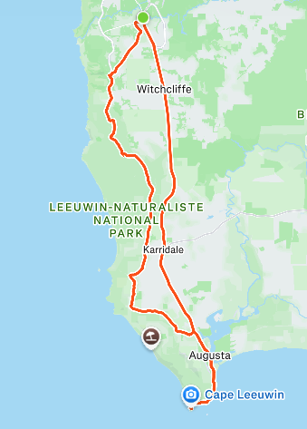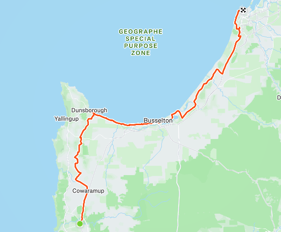 Margaret River to Bunbury (approximately 129km)